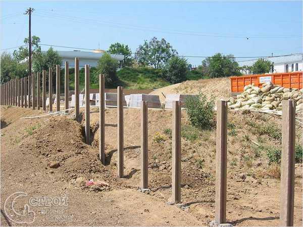 Если элементы забора не обладают значительным весом, используется свайный тип конструкции. Он отличается своей простотой и доступной стоимостью. Марка бетона под забор варьируется в пределах М100-М200. Нет необходимости в смеси высокого качества, поскольку её основной задачей является удержание сваи в вертикальном положении.