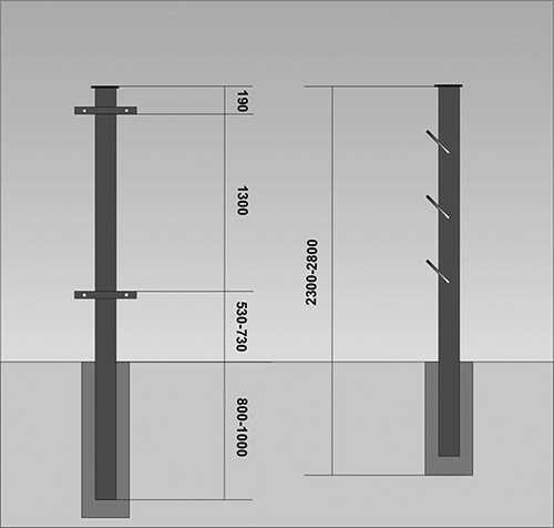 2. Рекомендуется покупать стандартные столбы от производителя, обработанные специальным составом. Длину необходимо рассчитывать так, чтобы был запас как для подземной, так и для наземной части.