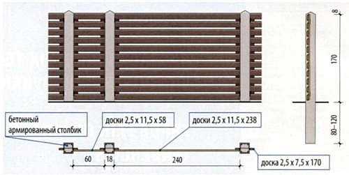Красивый забор с бетонными столбами простоит не одно десятилетие.