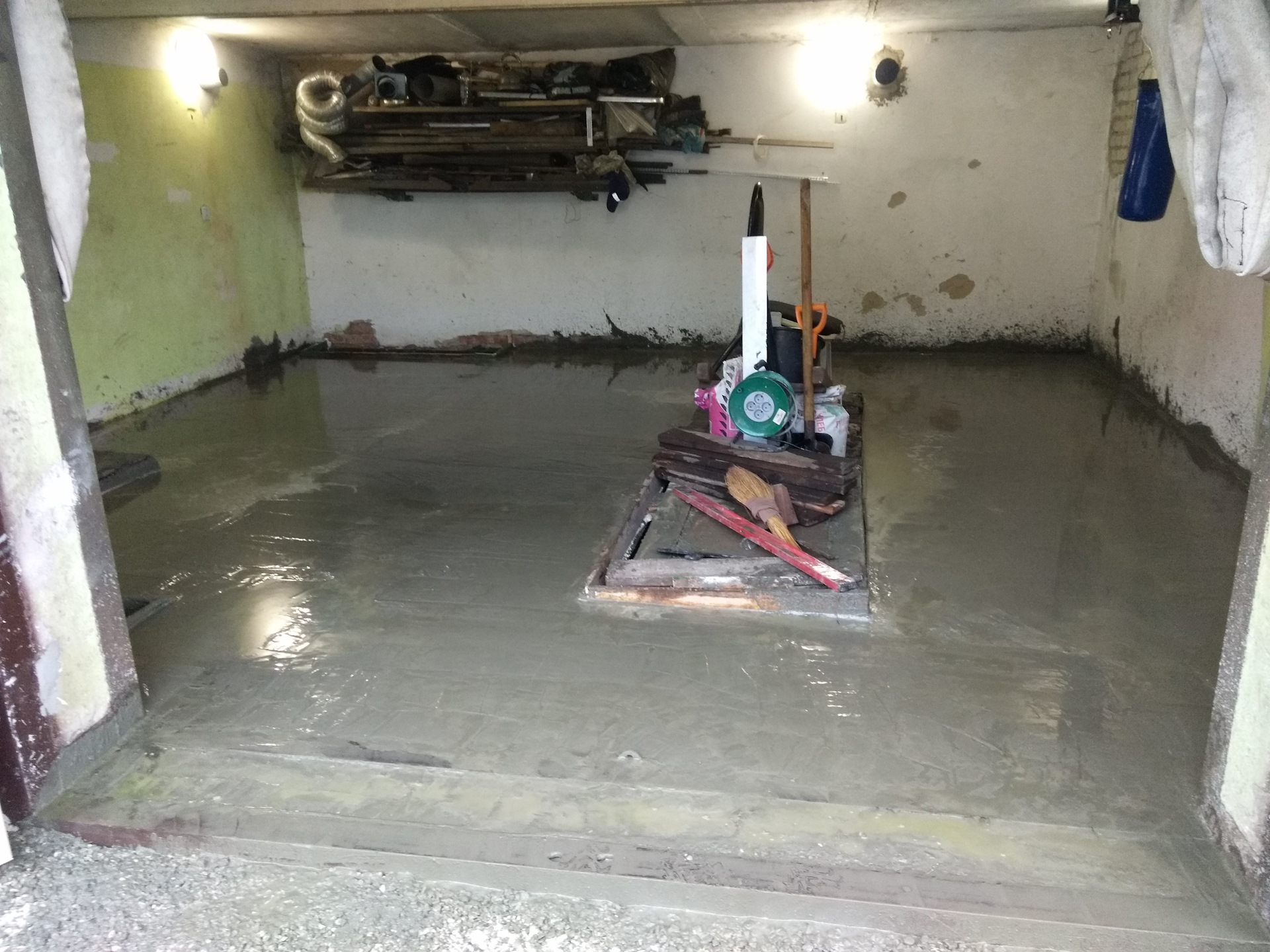 Заливать новую стяжку в старом гараже часто бывает очень сложно. Он уже заставлен большим количеством вещей, шкафов и т.д. Это займет слишком много времени и сил.