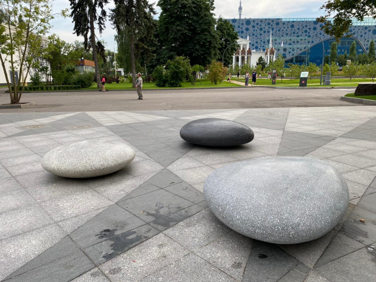 Была мысль сначала установить многоярусные вазонные комплексы. Но в нашем городке их не производят. Нашли столичные, но они какие-то стрёмные были и стоили очень дорого. В итоге купили каменные скамейки-клумбы в “Грильрок” и расставили их по периметру. Порадовало то, что всё рассчитали в тот же день, выставили счет и уже через пару дней сделали доставку на место. Браво, высший пилотаж, ребята!