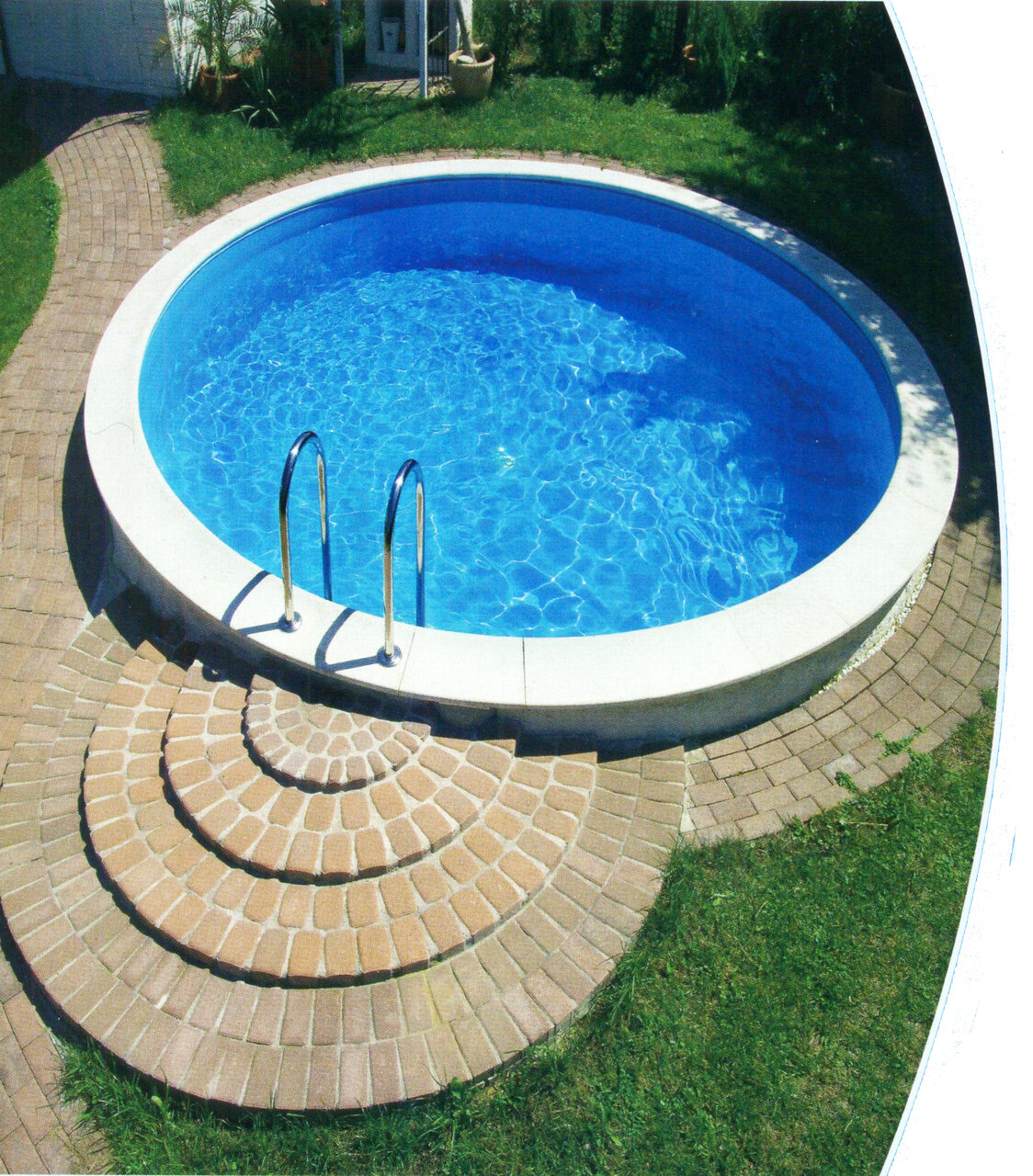 Композиционные чаши не способны на это. Бассейны больших размеров деформируются даже при поднятии в воздух. Поэтому производители делают дополнительные ребра жесткости, металлические бандажи. Кроме того, чашу нельзя использовать в качестве опоры для плит обходной зоны. По той же причине ее сложно установить на перекрытие цокольного этажа. Нагрузка от воды равномерно распределяется по дну и стенкам, поэтому и опора должна быть со всех сторон одинаковой.