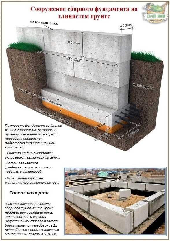 И если мы говорим о характеристиках конкретных блоков, то соответственно блочный фундамент тоже будет иметь такие же свойства. Но, кроме этого, стоит отметить еще несколько положительных моментов. Например, одним из преимуществ фундамента является то, что выполнять кладку стен можно сразу после формирования основания. А его способность выдерживать нагрузки довольно высока, так как на фундаменте строят даже большие здания.