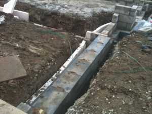 В котлован засыпается песчано-щебневая смесь, которую после следует залить водой и выровнять, используя специальный вибратор. После того, как слой будет утрамбован, следует уложить ещё одни – до тех пор, пока не наберётся слой достаточной толщины. После этого устанавливается опалубка из: