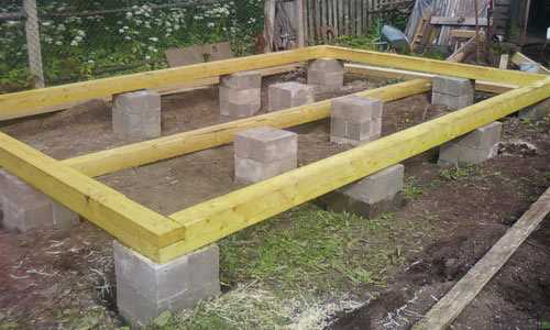 Теперь все готово к нижней обвязке, которую устанавливают на блоки. Что касается материала, то для деревянных домов с небольшим весом используется деревянный брус. Если же конструкция из кирпича или блоков, то ставятся металлические профили или железобетонные плиты. Достоинством столбчатого фундамента можно назвать быстроту выполнения и минимум трудовых затрат. Однако построить подвал или погреб вам не удастся.
