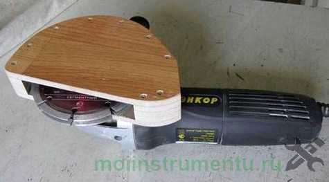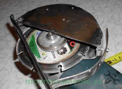Изготовить модифицированный защитный кожух можно из дерева, если вы владеете сварочным аппаратом, из листа железа. Толщина железной пластины, для большей безопасности при использовании, должна быть не менее 2—3 мм. Крепление УШМ к кожуху должно быть очень прочным, что обезопасит вас при производстве работ. Для удобства использования необходимо продумать устройство дополнительной рукоятки, а также опорную подошву для передвижения по поверхности (С регулировкой глубины реза).