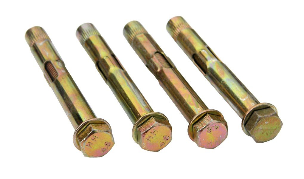Такие болты очень крепкие и устанавливаются с помощью молотка. Болт вставляется в отверстие, просверленное на ширину болта и на него крепят шайбу и гайку. За распорку втулки отвечает специальный механизм, по которому нужно ударить, чтобы активировать механизм. Болт нужно вставить в отверстие и ударить по нему молотком, чтобы открыть распорки.