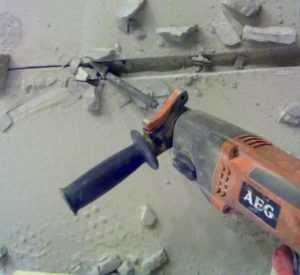 - Потом нужно при помощи перфоратора убрать бетон между прорезами.