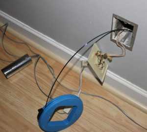 Если розетка будет не высоко от пола, то провода можно спрятать под пол.