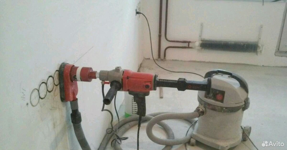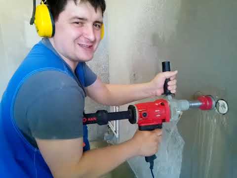 Применять установки можно для проделывания отверстий даже в труднодоступных местах или чрезвычайно узких помещениях. Если стены насыщены арматурой – не беда, коронка легко прорежет конструкционную сталь и оставит аккуратные края.