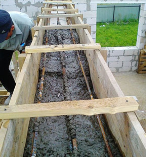 Во время строительства бетон заливается в опалубку, которая действует как форма и образует фундамент дома.