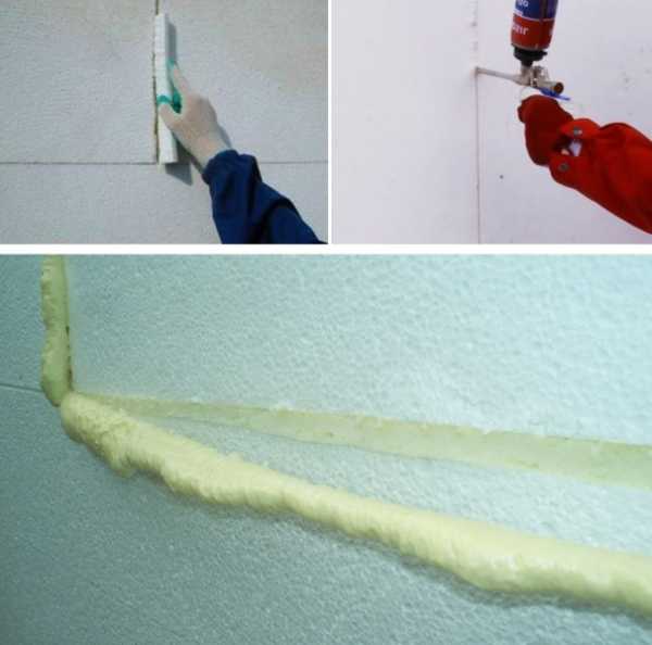 Чтобы избежать проникновения холода, стыки необходимо тщательно заделать. Обычно для этого их заполняют монтажной пеной. Следует строго соблюдать рекомендации по работе с пеной для монтажа. Вместо нее стыки можно заполнить тем же клеем, но этот способ гораздо менее экономичен, чем предыдущий.