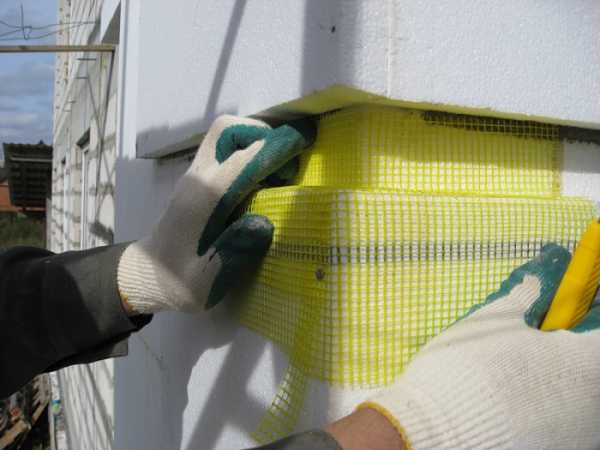 Обратите внимание! Работы удобнее всего проводить снизу вверх. При этом сетка должна погрузиться ровно наполовину толщины раствора. В таком случае она будет довольно прочно приклеена как к самому пеноплексу, так и сможет удерживать внешний слой штукатурки.