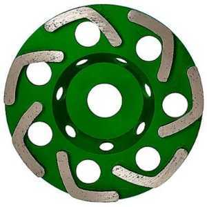Шлифовальные чашки в зависимости от модели имеют либо алмазные сегменты, либо сплошное алмазное покрытие. В корпусе проделаны отверстия, которые защищают инструмент от перегревания, снижают его вес и уменьшают вероятность биений.