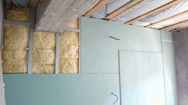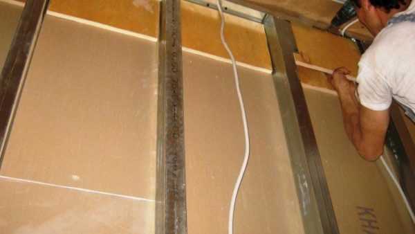 - Для утепления и шумоизоляции в каркас укладывают маты из каменной или стеклянной ваты.