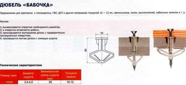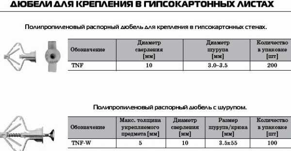 Пластиковые дюбели типа бабочки или дривы имеют меньшие допустимые нагрузки и использовать их для массивных предметов нежелательно.