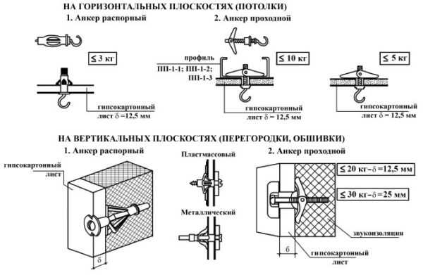 Схема крепления тяжелых предметов на гипсокартон - В некоторых вариантах фиксации нужны специализированные приспособления, позволяющие монтаж.