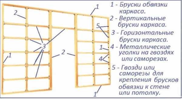 Монтаж каркаса позволяет выровнять поверхности без очистки стен от старых покрытий и оштукатуривания. Недостатки метода: его трудоемкость, потребность в дополнительных материалах, лишние затраты. Кроме того, уменьшается полезная площадь помещения – до 10 см с каждой стороны.