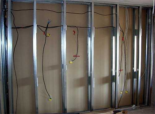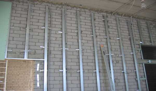 стены. Тип профилей выбирают исходя из особенностей конструкции: ее высоты и количества слоев гипсокартона (возможен монтаж в один или два слоя). Если длина облицовки превышает 10 м – необходимо предусмотреть компенсационные зазоры для предотвращения деформации материала при изменениях температуры и влажности.