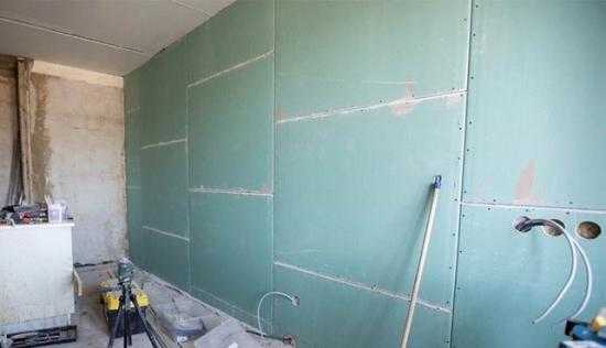 Во влажном помещении используется влагостойкий гипсокартон: он отличается, как правило, темно-зеленым цветом внешнего слоя, изготовленного из устойчивого к влаге материала.