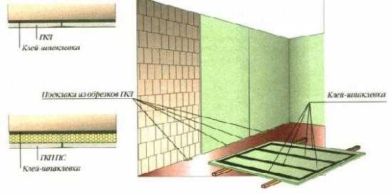 Однако в таком случае теряется весь смысл предварительной гипсокартонной отделки, да и не всегда возможно применить такой приём.