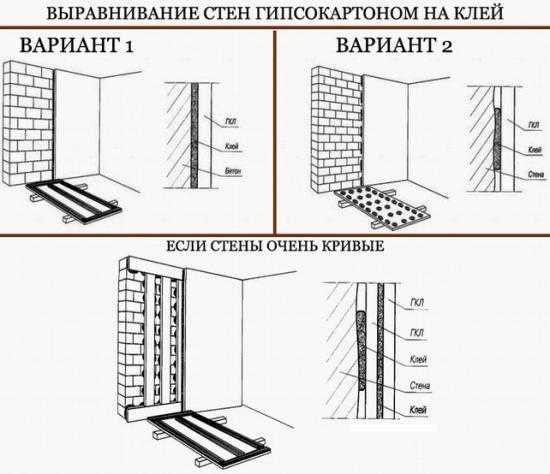 Все три вида крепления гипсокартона к стене без профиля предполагают соблюдение нескольких условий: