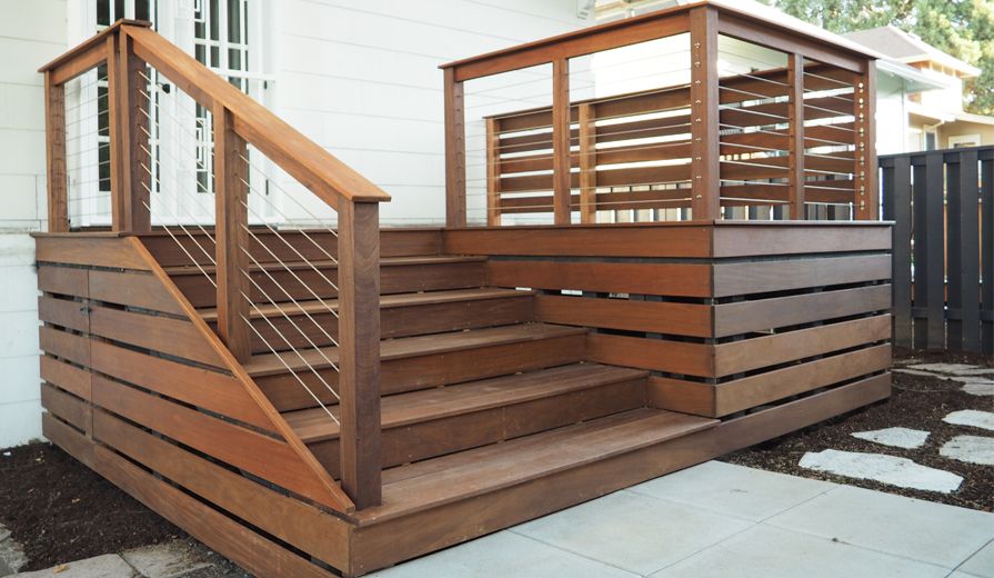 Лучшая основа для ступенек крыльца – декинг. К тому же он не требует окраски.