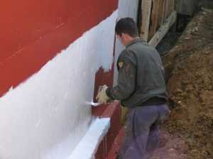 - На поверхность кладки после ее зачистки необходимо нанести в 3-4 слоя битумную мастику (или любой другой аналог обмазочной гидроизоляции).