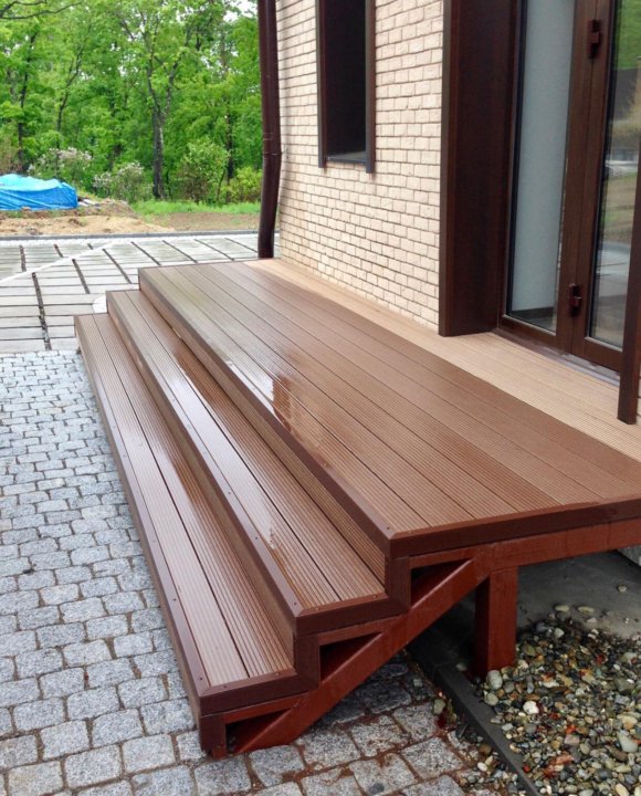 Иногда ремонт деревянного крылечка предполагает замену проступей и подступенков на новые