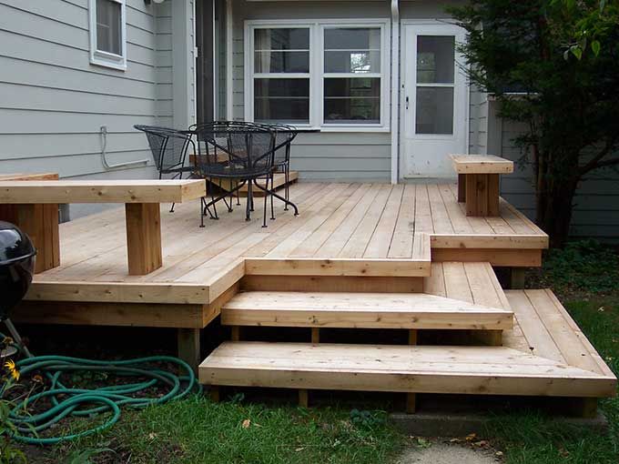 Любая структурно прочная палуба без сгнивших, деформированных или иным образом ненадежных досок, как правило, может быть преображена просто путем укладки модульной деревянной плитки или структурной брусчатки из керамогранита прямо поверх существующей палубы.И это гораздо более простой и экономичный вариант, чем полная перестройка террасы или даже просто замена досок.