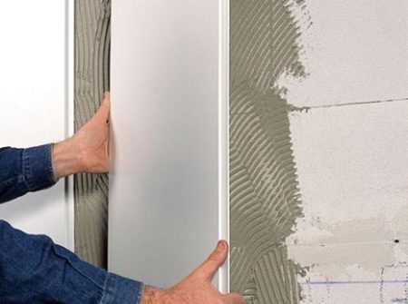 ΠΡΠΎΡΠΎΠΉ ΡΠΏΠΎΡΠΎΠ± ΡΠ΅ΡΠ΅Π½ΠΈΡ ΠΏΡΠΎΠ±Π»Π΅ΠΌΡ Β«ΠΊΠ°ΠΊ Π·Π°ΠΊΡΠ΅ΠΏΠΈΡΡ ΠΠΠ₯ ΠΏΠ°Π½Π΅Π»ΠΈ Π½Π° Π³ΠΈΠΏΡΠΎΠΊΠ°ΡΡΠΎΠ½Β» ΠΏΡΠ΅Π΄ΡΡΠΌΠ°ΡΡΠΈΠ²Π°Π΅Ρ ΠΊΡΠ΅ΠΏΠ»Π΅Π½ΠΈΠ΅ Ρ ΠΏΡΠΈΠΌΠ΅Π½Π΅Π½ΠΈΠ΅ΠΌ ΠΊΠ»Π΅Ρ. Π’ΡΡ ΠΊΡΠ΅ΠΏΠΈΡΡ ΠΠΠ₯ ΠΏΠ°Π½Π΅Π»ΠΈ Π½Π° Π³ΠΈΠΏΡΠΎΠΊΠ°ΡΡΠΎΠ½ ΠΌΠΎΠΆΠ½ΠΎ Π² Π»ΡΠ±ΡΡ ΡΡΠΎΡΠΎΠ½Ρ. Π’Π°ΠΊΠΈΠΌ ΠΌΠ΅ΡΠΎΠ΄ΠΎΠΌ ΠΎΠ±ΡΡΠ½ΠΎ ΠΊΠ»Π΅ΡΡΡΡ ΠΠΠ₯ ΠΏΠ°Π½Π΅Π»ΠΈ Π½Π° Π³ΠΈΠΏΡΠΎΠΊΠ°ΡΡΠΎΠ½ Π² Π²Π°Π½Π½ΠΎΠΉ. Π ΠΏΠΎΡΠΊΠΎΠ»ΡΠΊΡ ΠΠΠβ ΠΌΠ°ΡΠ΅ΡΠΈΠ°Π» Ρ ΡΠΎΠ²Π½ΠΎΠΉ ΠΏΠΎΠ²Π΅ΡΡ Π½ΠΎΡΡΡΡ, ΡΠΎ Π΄ΠΎΠΏΠΎΠ»Π½ΠΈΡΠ΅Π»ΡΠ½ΠΎΠ΅ Π²ΡΡΠ°Π²Π½ΠΈΠ²Π°Π½ΠΈΠ΅ ΡΡΠ΅Π½ΠΎΠΊ Π² ΠΏΠΎΠΌΠ΅ΡΠ΅Π½ΠΈΠΈ Π½Π΅ ΠΏΠΎΡΡΠ΅Π±ΡΠ΅ΡΡΡ. Π’Π°ΠΊΠΈΠΌ ΠΆΠ΅ ΡΠΏΠΎΡΠΎΠ±ΠΎΠΌ ΠΏΠΎΠ»ΠΎΡΠ½Π° ΠΏΡΠΈΠΊΠ»Π΅ΠΈΠ²Π°ΡΡΡΡ ΠΊ ΠΏΠΎΡΠΎΠ»ΠΊΡ.