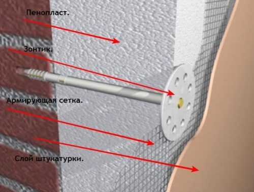 Первоначально плиты ППС фиксируются на поверхности с помощью специального клея. При установке соседних элементов, необходимо обеспечить замковые соединения для уплотнения швов. Окончательное закрепление плит осуществляется при помощи особых пластиковых гвоздей с большими круглыми шляпками (грибков).