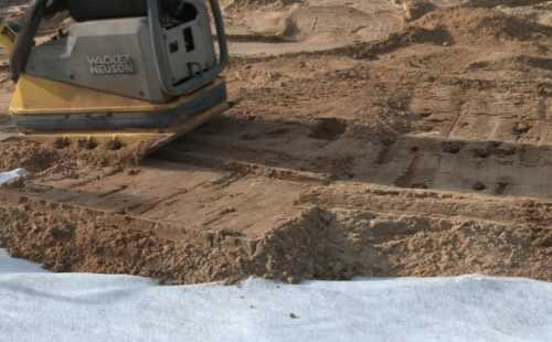 - расстелите слой геотекстиля, который призван предотвращать капиллярный подъем грунтовых вод и прорастание сорных растений;