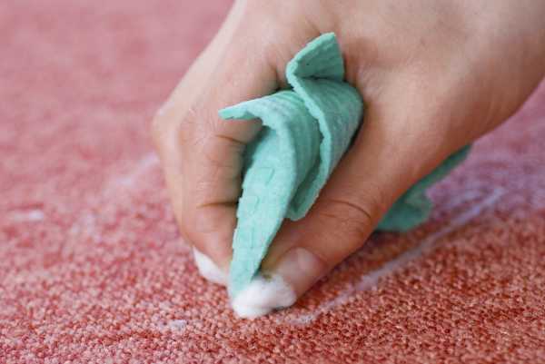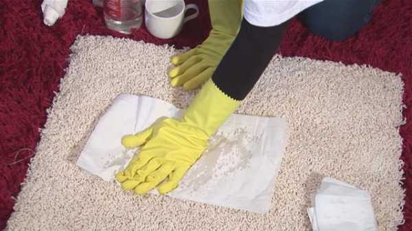 - Обработайте раствором «пахучее» место на ковре: втирайте его тряпкой.