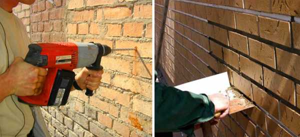 - Шаг №1. Если есть возможность, лучше всего демонтируйте старую кирпичную кладку и сделайте новую. Для усиления конструкции используйте металлические полосы или арматуру. Кладку кирпичей делайте в виде замка.