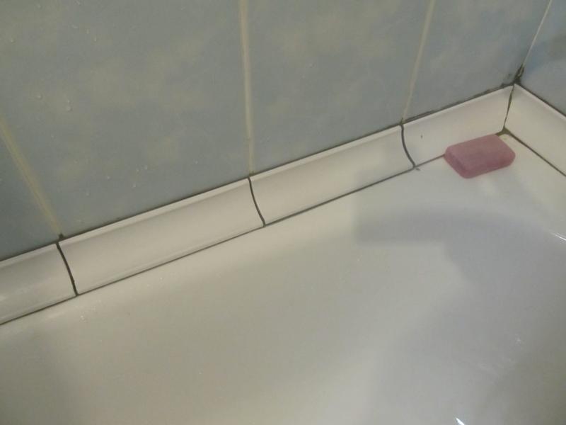 - Вымыть плитку рядом со стыком и край ванны.