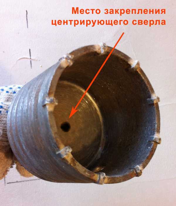 Центральные отверстия можно предварительно просверлить на нужную глубину обычным сверлом или буром, диаметром 6-8 мм и, уже после этого, приступать к сверлению основного контура гнезда коронкой.
