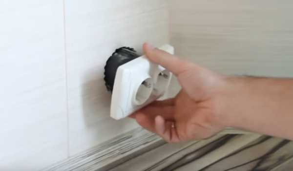 Вслед за этим электрический кабель, подводящий питание к розетке, заводится в имеющееся на задней стенке отверстие, а его корпус вставляется в нишу до упора.