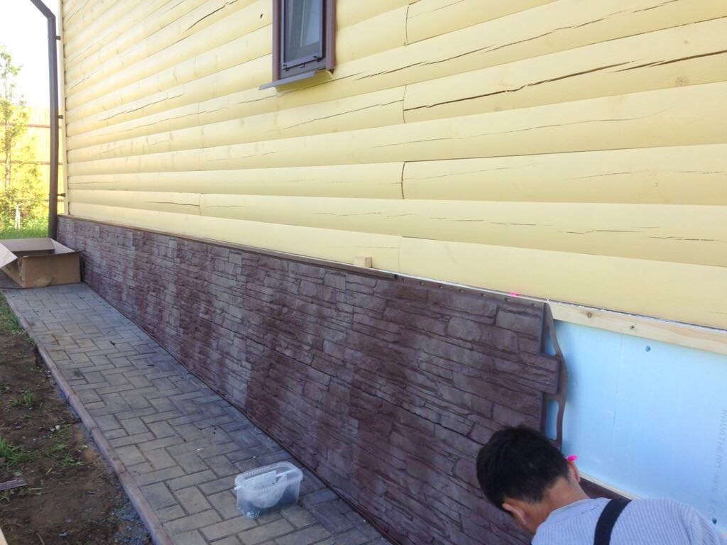 Этот факт делает плиты невосприимчивыми к влажности, их не требуется даже грунтовать перед наклейкой плитки. Плиты ОСП настолько прочные, что их используют и конструктивно, например, в каркасно-панельных домах. - Если вы хотите максимально упростить процесс облицовки свайного фундамента, получив при этом качественную имитацию камня или кирпича, проще всего использовать цокольные фиброцементные или полипропиленовые панели. Да и вообще, можно использовать любые виды сайдинговых и композитных панелей.