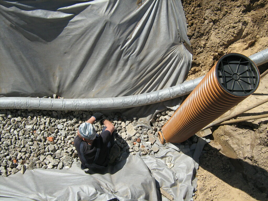 Геоткань великолепно подходит для обмотки элементов дренажной системы