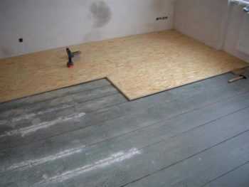 Совет! Чтобы повысить прочность основания и сделать ровным, на деревянный пол кладут листы ДВПО. При укладке листов оставляют зазоры для исключения деформации материала во время последующей эксплуатации.