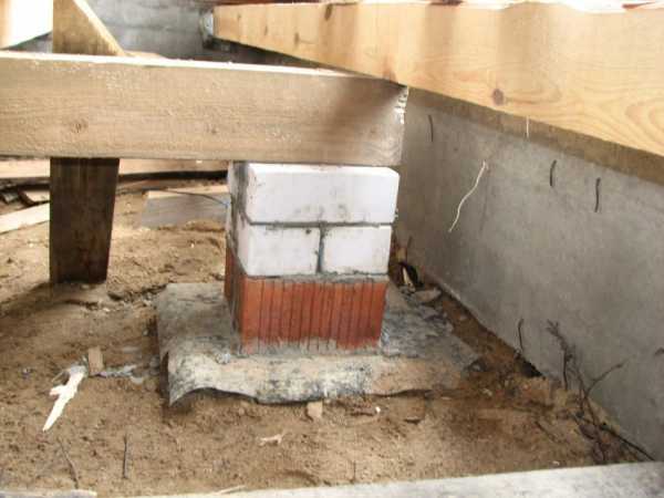 - Далее ставятся лаги из деревянного бруса.