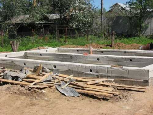 Залитый фундамент оставляют на зиму для проверки его на морозостойкость, влагонепроницаемость, способность к нагруженному проседанию. Опалубку перед зимними холодами нужно убрать, особенно если она изготовлена из дерева. Деревянные щиты разбухают, раздвигают подпорки.