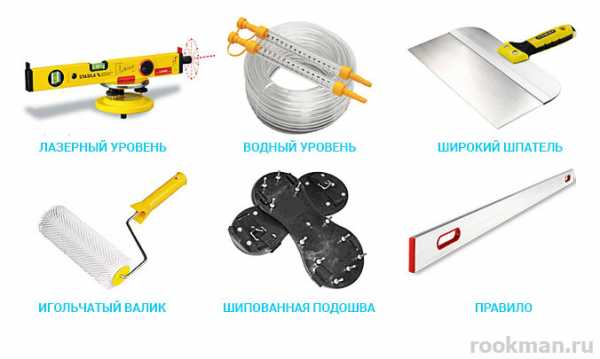 - зубчатый шпатель или правило (в зависимости от материала выравнивания).