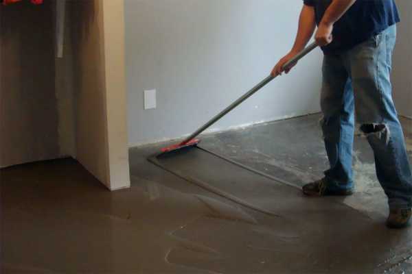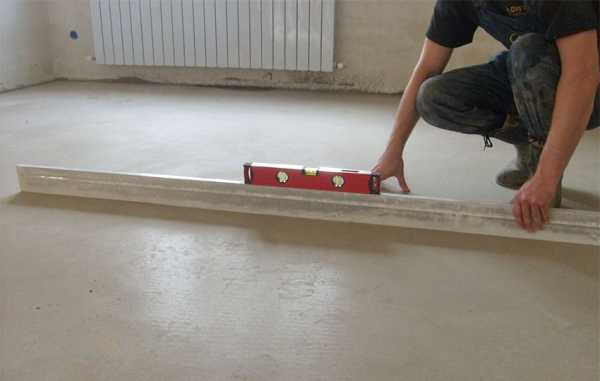 После этого выполняется заливка чернового основания приготовленным раствором – необходимо проследить, чтобы уровень залитого раствора не превышал уровень ранее установленных меток.