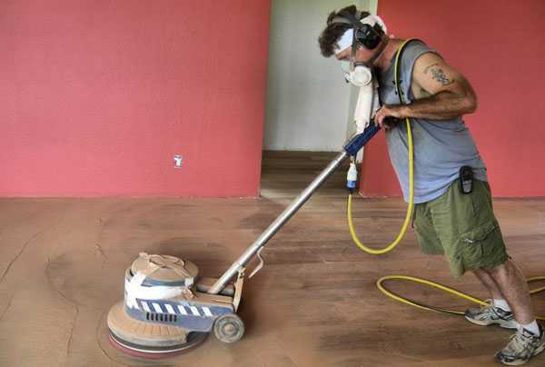 С помощью циклевальной машины верхний слой деревянной поверхности будет снят, и в результате мы получим гладкий пол, называемый черновым. Убираем с него пыль и мусор – теперь и ламинат стелить можно.