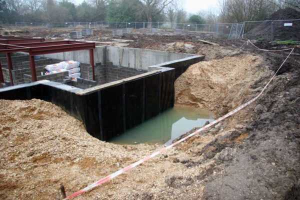 Есть ещё один важный фактор, про который нельзя не упомянуть — уровень грунтовых вод. Высокое залегание таковых может сделать стоимость гидроизоляции стен подвала непомерной. В этом случае вам поможет хорошая дренажная система на участке, но и её устройство «влетит в копеечку».