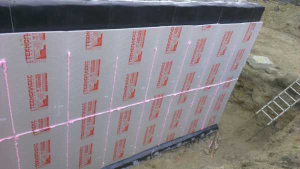 Для поддержания температурного режима внутри цокольного этажа необходимо выполнить утепление стен фундамента. Обычно оно устраивается с наружной стороны стены с помощью плит экструзионного пенополистирола. Помимо основной теплоизолирующей функции, этот материал сможет защитить гидроизоляцию от строительного мусора или камней обратной засыпки. Следует помнить, что крепление такой теплоизоляции не следует производить на фасадные дюбеля — они повредят гидроизоляцию. Утеплитель монтируется на специальные приклеивающие мастики или клей-пены, которые временно фиксируют материал на вертикальной поверхности стены.