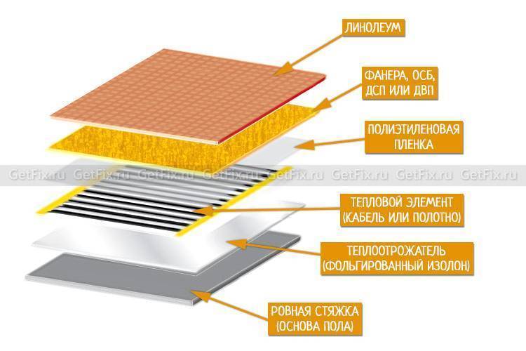 От него зависят все дальнейшие действия. Например, если приобретено напольное покрытие бытового назначения, которое имеет один слой из ткани или ПВХ, то под него можно вообще ничего не стелить. Этот вид линолеума уже сам по себе оснащен утеплителем. Если под него еще установить подложку, то пол будет не просто теплым, но и более долговечным.