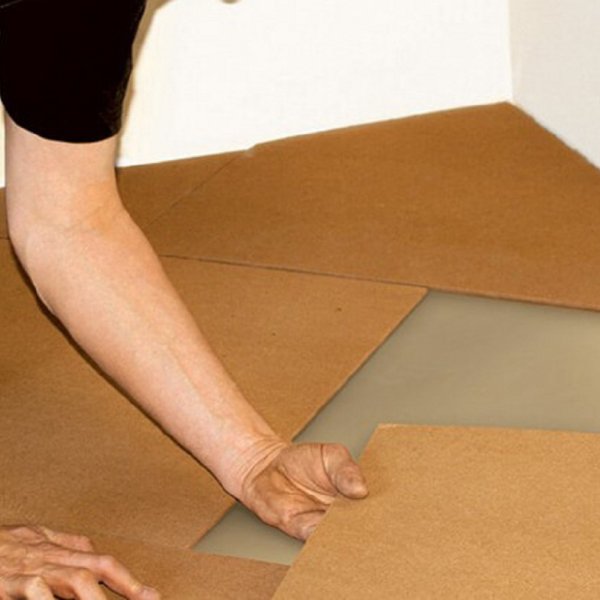 Для сохранения тепла можно застелить на бетонный пол линолеум с подложкой. В качестве утеплителя лучше использовать фанерные листы или ДВП, подойдет и пробковая подстилка, которая обеспечит не только тепло-, но и звукоизоляцию. Перед тем, как приступить к настилу линолеума на бетонное основание, приобретите необходимые материалы и инструменты: